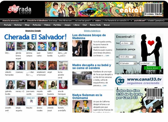 cherada.com se abrió el 17 de abril de 2006, ese día hubo como 60 registros, más que todo de nuestros amigos. En mayo el sitio agarró envión, empezaron a registrarse muchas personas. La queja por esos días era que no había mucho que hacer por el sitio y habían fallas. El diseño iba depre también jaja. En Septiembre se lanzó la 2a versión. Un header azul y varias pajitas en flash por aquí y allá. Luego nos daríamos cuenta que era ineficiente XD